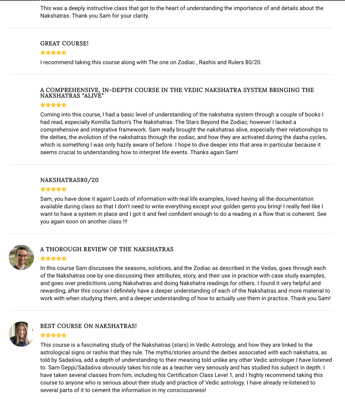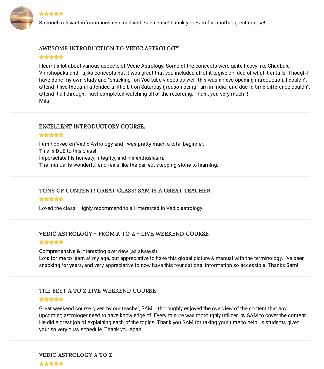 These Weekend Courses were extremely popular and well-received. Just look at all of the favorable comments. All courses had over 100 students in attendance. The "Nakshatra's Course had over 200 students".